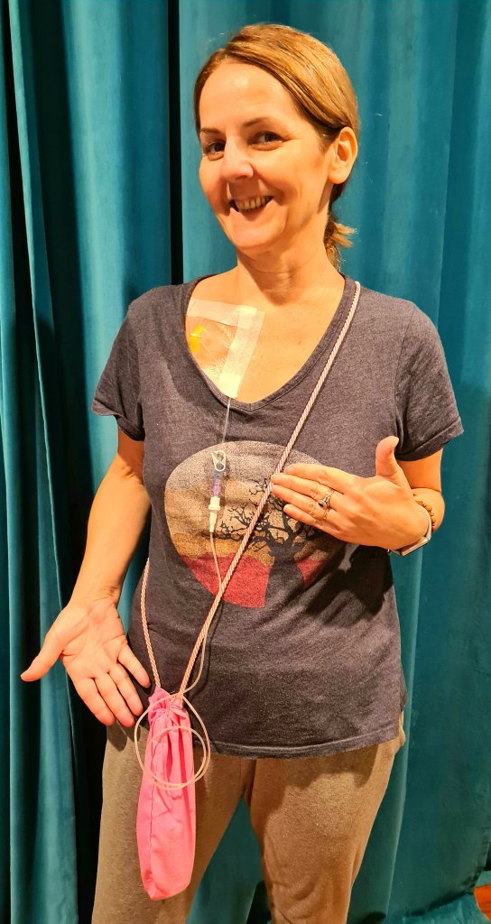Probably the freakiest part was leaving with a bottle of chemo still attached that had to stay on giving little shot doses over the next couple days. It’s connected kinda awkwardly and I’m scared as fuck that it’s gunna get knocked by mistake and snap off like my cartilages in my knees.